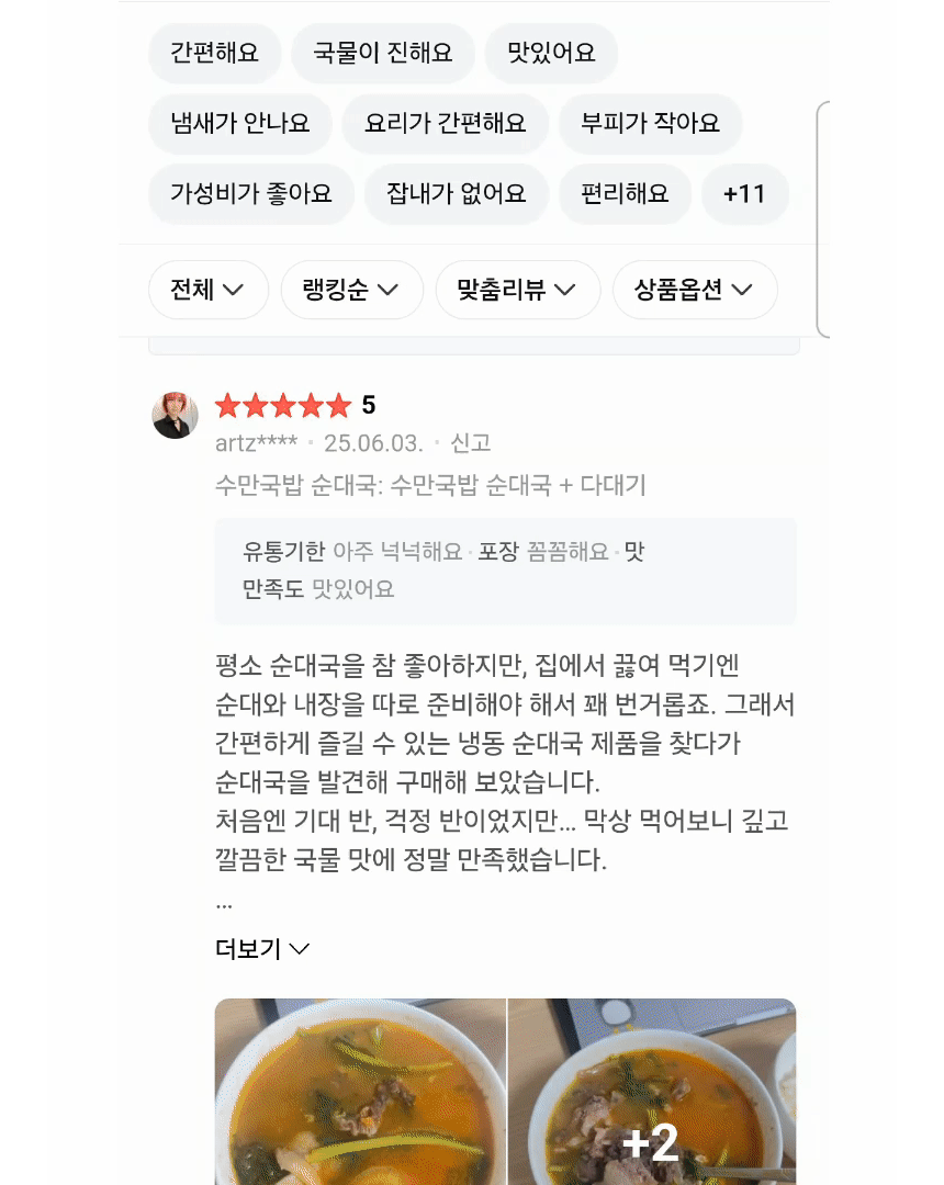 물만 넣어 끓이면 국밥완성 초간편 순대국